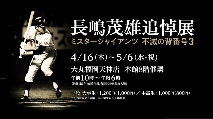 チケット販売に関する情報は、長嶋茂雄追悼展福岡会場HPにて近日中にお知らせいたします。