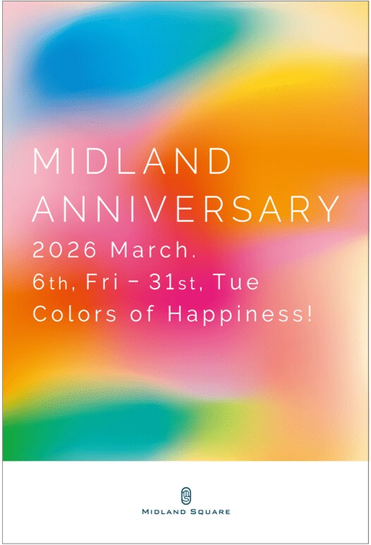 ミッドランドスクエアは2026年3月6日(金)~31日(火)の期間、『MIDLAND ANNIVERSARY 2026』を開催します。今年のテーマは「Colors of Happiness!」。春色が重なり、つながり、芽吹いていくように、これまで育んできた“しあわせの色”が館内を彩ります。オープニングイベントは2日間にわたり開催。第1弾となる6日(金)には、若手実力派の歌舞伎俳優・中村鷹之資さんを迎えたスペシャルトークショーを実施。続く7日(土)には、多彩な才能で幅広い層から支持を集めるMORISAKIWINさんによるスペシャルトーク&ライブを開催します。さらに、人気スタイリスト・辻直子さんによるスタイリングアドバイスも両日実施し、華やぎに満ちた特別な2日間を演出します。そのほか、サスティナブルマルシェやホワイトデーポップアップなど、毎年好評の企画も多数ラインアップ。しあわせが色づく19周年のひとときをお届けします。