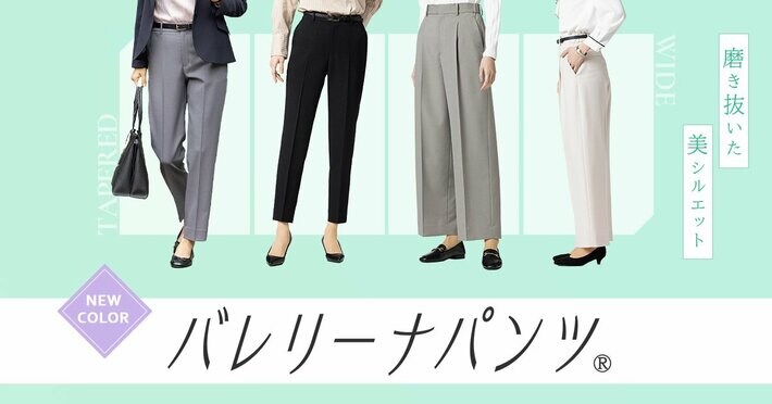 2023年9月に販売を開始した「バレリーナパンツ(R)」は、「バレリーナのようにまっすぐ伸びた美脚」というコンセプトのもと、快適なはき心地とスタイルアップも叶えるアイテムです。テーパード・ワイドの2タイプを展開しており、多くのお客様からご支持をいただいております。
