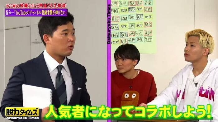 彼らの「YouTubeのチャンネル登録者が伸びない」というお悩みに対して、「(お互い)人気者になって、コラボしよう!」と言って、なんとか乗りきりました。