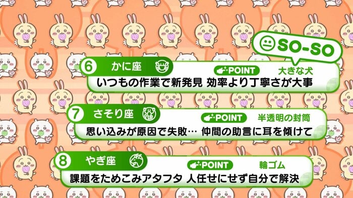 『めざましテレビ』で放送中の「ちいかわ占い」 テレビ放送がない日はお休みで、月~土:朝7時以降に更新予定です。