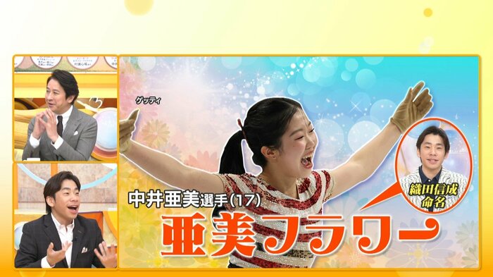 その華麗な着氷から“トリプルアクセルクイーン”とも称される中井選手ですが、織田氏は、中井選手の新たな愛称として『亜美フラワー』という名前を命名しました。