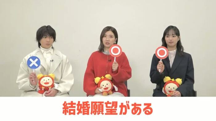 「結婚願望がある」に、マルの札を挙げた福田さんと関水さん。