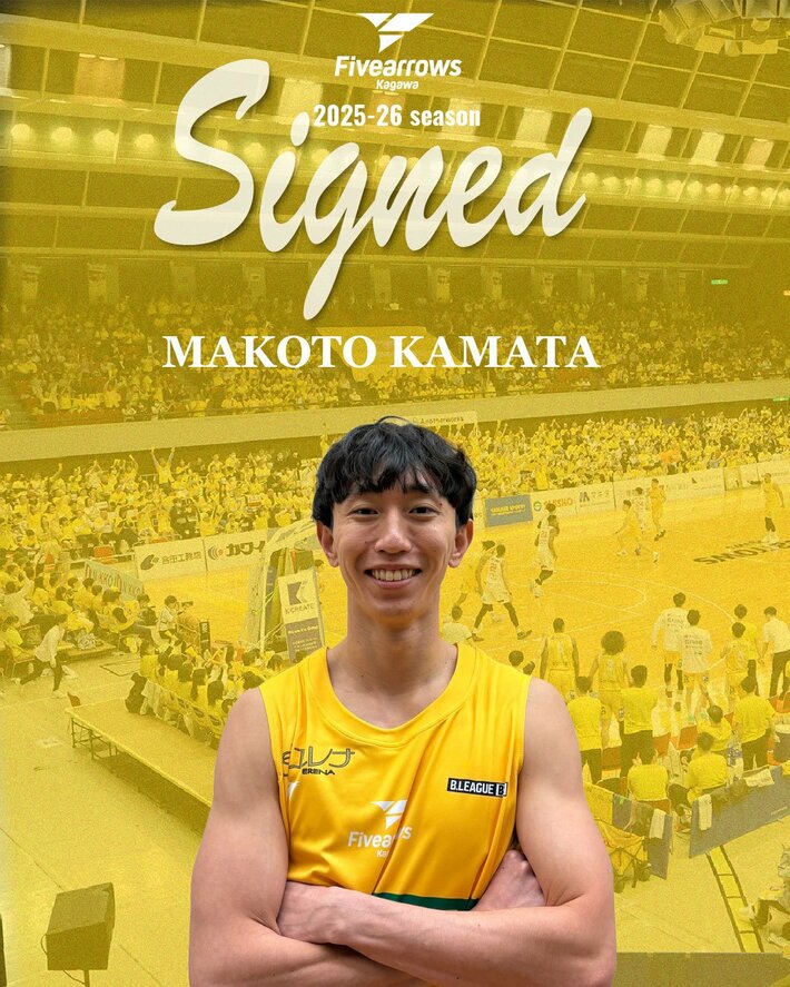 このたび香川ファイブアローズでは、鎌田真選手との2025-26シーズンの選手契約が決まりましたので、お知らせいたします。なお、2月20日(金) 15:00に自由交渉選手リストから抹消されます。