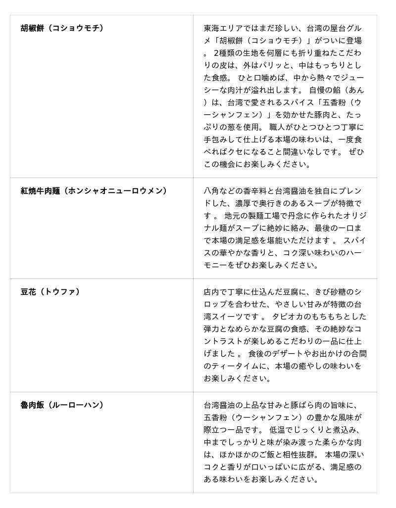 ◆待望の台湾屋台グルメが登場!新店舗「台湾小吃店」