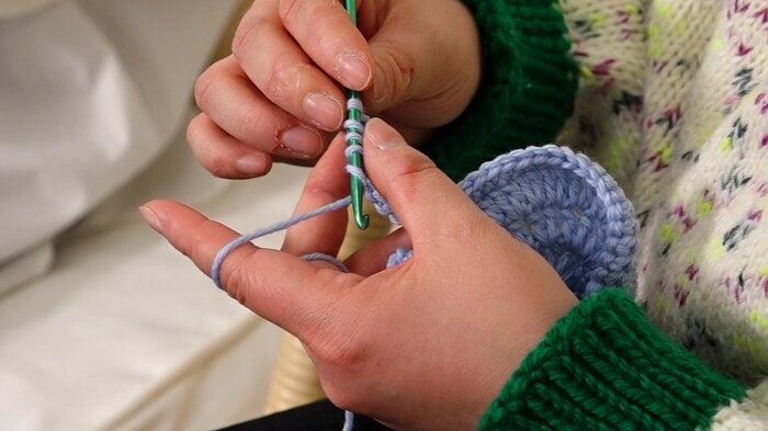 編み物初心者にもオススメのアイテム「フリルシュシュ」と「うさぎのコースター」をかぎ針で編みながら、視聴者からのお悩みに回答。