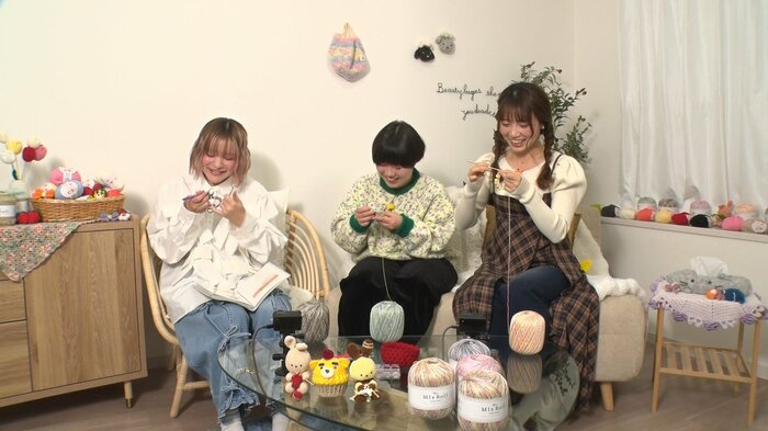 編み物についての質問から、日常の中で直面するお悩み、さらには人生観についてなど、さまざまなテーマで、3人が自由にトークを繰り広げます。