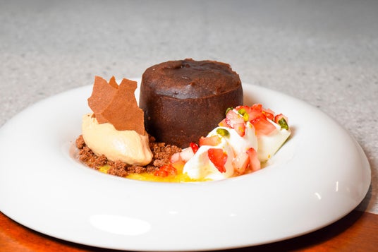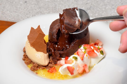 出来立てフォンダンショコラに、甘夏や黒糖ミルクアイス、苺を添えて
