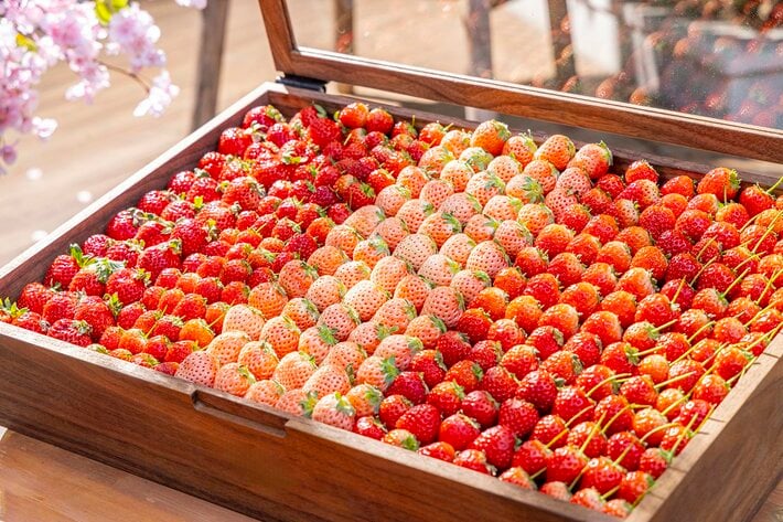 甘さ、香り、それとも直感?その時期にいちばん輝く旬のいちごを厳選。宝石みたいに並ぶフレッシュないちごを、好きなだけ。誰にも止められない“いちごの幸せ”、思いきり楽しんで!