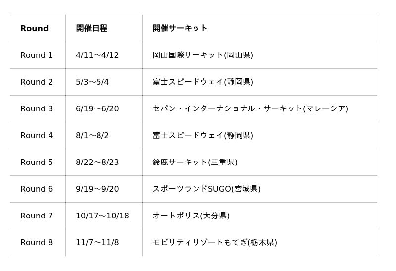 開幕戦は、5月1日「富士スピードウェイ」にて開催される