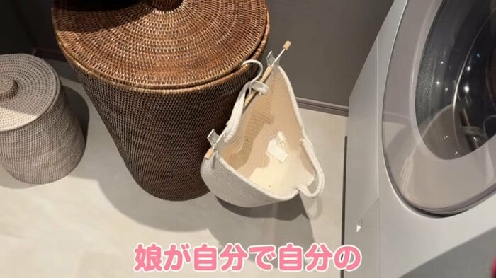 そして、大きなカゴには小さなバスケットがかけられていて、こちらには“べびちん”が脱いだ服を自分で入れているんだとか!わずか4歳ながらに立派ですね♪
