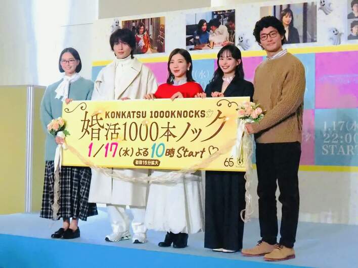 水10ドラマ『婚活1000本ノック』(フジテレビ)の制作発表記者会見が1月14日に都内スタジオで行われ、主演の福田さん、共演の八木さん、関水渚さん、野村周平さん、白河れいさんが出席しました。