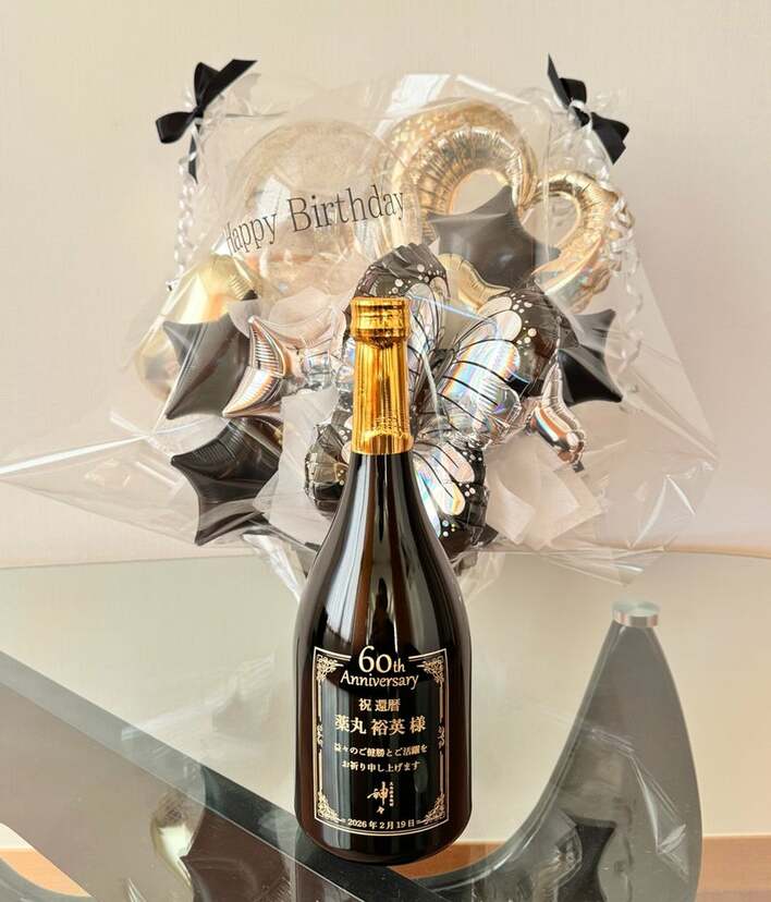 投稿文では「還暦を迎えました。多くの方々に支えられ、ここまで歩んでこられたことに感謝いたします。」とつづられ、テーブルには「60th Anniversary 祝 還暦 薬丸裕英様」と、名前入りのお祝いボトルが置かれています。その後ろには、セレブレーション仕様のバルーンも。