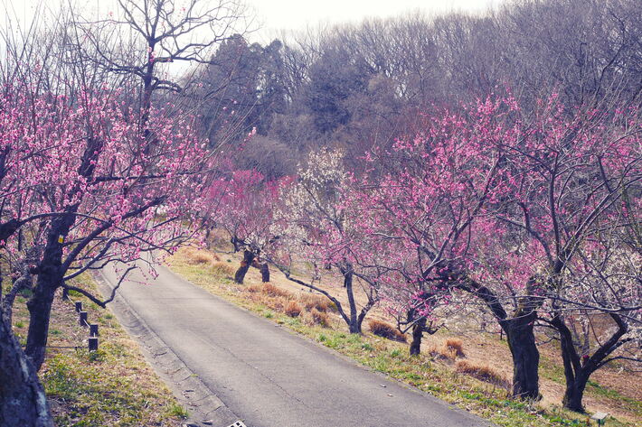国営武蔵丘陵森林公園の「梅林」では、約100品種・約400本のウメが2月20日(金)に見頃を迎え、3月中旬頃までお楽しみいただけると予想しております。早咲きの紅梅は1月下旬から開花しましたが、品種数が多いことから季節が進むに連れて中咲き・遅咲きの品種が順次開花していくため、長期間にわたり花風景をご覧いただけます。「梅林」全体のウメが最も美しく、華やかに咲きそろう見頃の最盛期は2月末頃になると予想しております。「梅林」全体に漂うウメの香りと、白・桃・紅色の花風景に、春の訪れを感じてみてはいかがでしょうか。