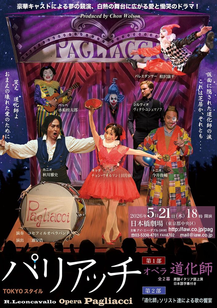 オペラ「道化師(パリアッチ)」が2026年5月21日 (木)に日本橋劇場(日本橋区民センター内)(東京都 中央区 日本橋蛎殻町 1-31-1)にて上演されます。