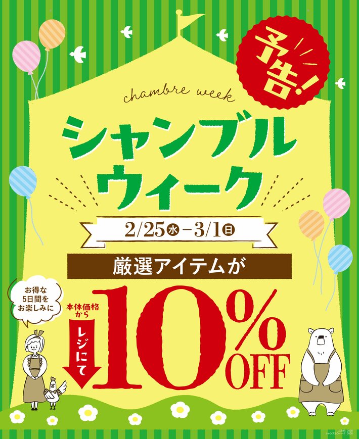 雑貨&ファッション『シャンブル』は、年2回「シャンブルウィーク」を開催し、日頃のご愛顧に感謝の気持ちをお届けします。