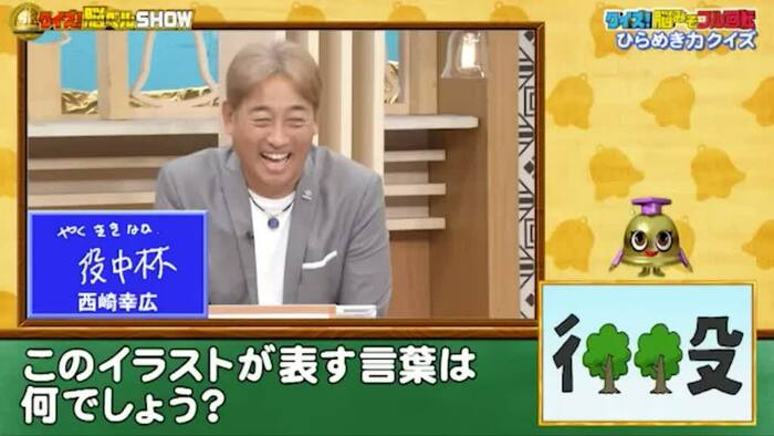 西崎さんの答えは、「役中林」。「役」の「中」に「林」…。確かにその通りなのですが、残念ながら不正解。