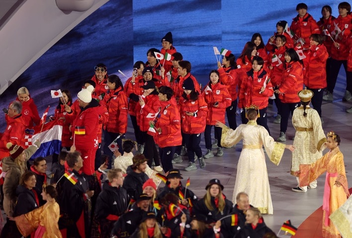 閉会式で日本の旗手を務めたのは、フィギュアスケートで個人と団体で2つの銀メダルを獲得した坂本花織選手と、開会式でも旗手を務めたスピードスケートの森重航選手。