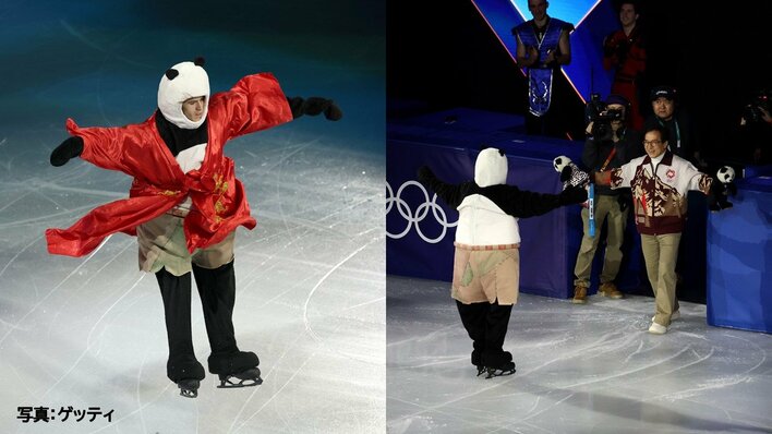 男子シングル金メダリスト、ミハイル・シャイドロフ選手(カザフスタン)は映画「カンフー・パンダ」の演目でパンダの姿に。演技後には、ジャッキー・チェンさんがサプライズ登場するなど、会場は大盛り上がり。
