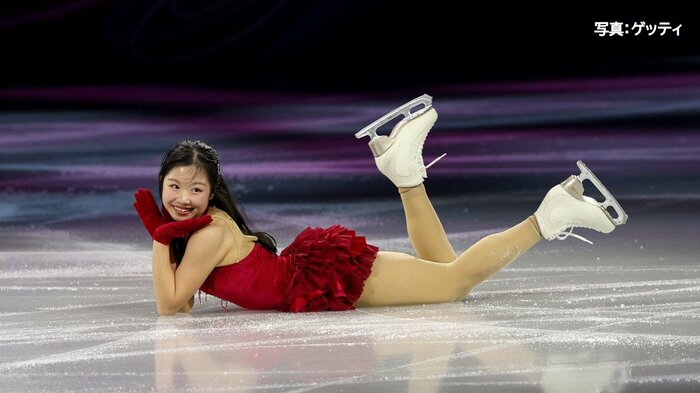 真っ赤な衣装で現れたのは、日本フィギュア史上最年少メダリストとなる銅メダルを獲得した中井亜美選手。