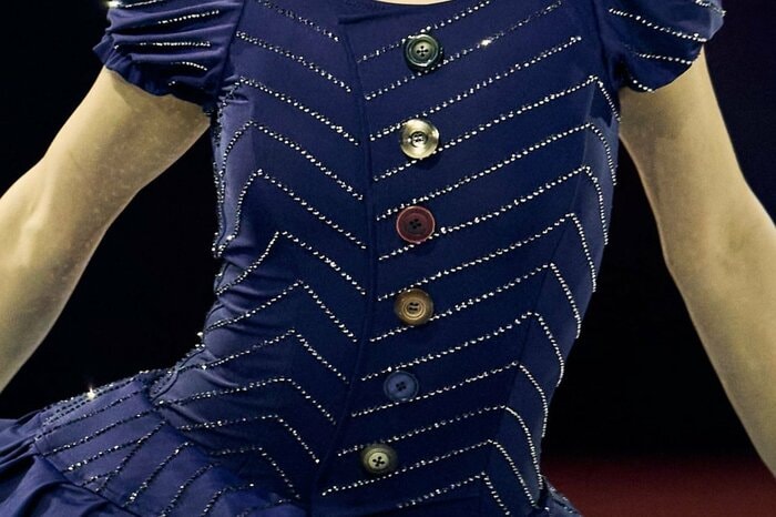 デザインを担当したリサ・マッキノン氏は、自身のインスタグラムで、リウ選手の衣装のボタンが五輪カラーになっていることを報告。