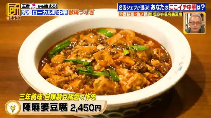 番組の最後、「Chinese Tapas hachi」の店主・高野さんに「あなたにとって、ここイチ(ここが一番)の中華は?」と尋ねたところ、「中国料理 仙ノ孫」の麻婆豆腐に戻ってくるという結果に。