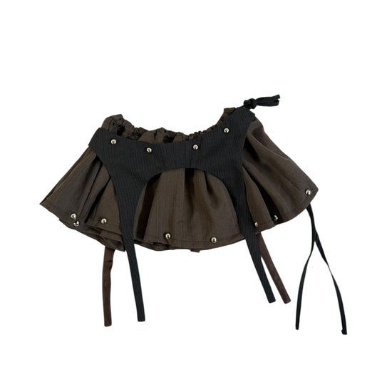 「Chinatsu Aoyama」Remake gutter skirt 20,900円 一枚でレイヤードしているようなデザインの巻きスカートは古着のスラックス2枚を解体して再構築しています。大きなカシメがアクセント。