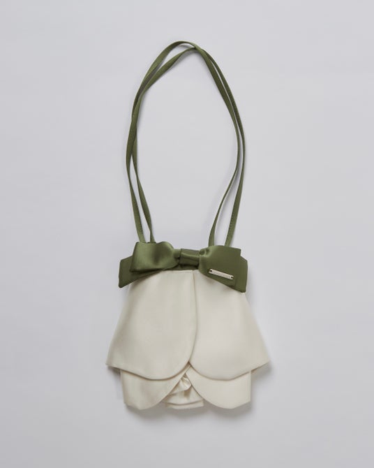【阪急うめだ本店先行再販】Satin Rose Bag(Ivory) 27,500円 人気アイテムのローズモチーフの巾着バッグ。肩紐は斜めがけにも。コーデに添えるだけでロマンティックなムードに。