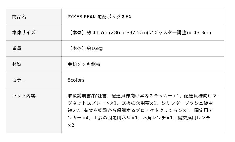 Fun Standard株式会社(株式会社RKB毎日ホールディングスグループ、本社:福岡県大野城市、代表取締役:大屋良介、笹森広貴)が展開するブランドPYKES PEAK(パイクスピーク)は、ベストセラーとなった現行モデルの利便性をさらに突き詰めた進化版、「宅配ボックスEX」を2026年2月13日(金)より販売開始いたしました。