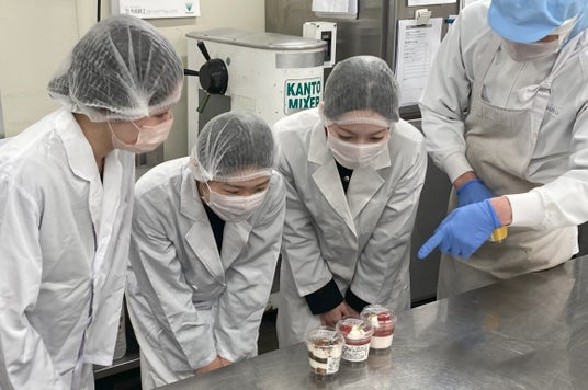 本商品は、大妻女子大学家政学部食物学科管理栄養士専攻の学生3名が中心となり、商品の企画から味の設計まで、何度も試作と意見交換を重ねながら開発されました。プロジェクトには、同大学の卒業生であり、現在はフードプランナーとして活躍する岸村康代さん(同大学家政学部食物学科管理栄養士専攻卒業)も参加。学生たちの自由な発想や大学での学びで得た知見に、岸村さんの専門的な視点と経験が加わることで、味わい・見た目ともに洗練された一品が誕生しました。