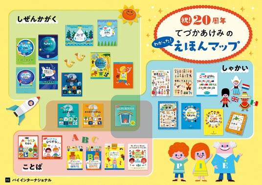 2006年に刊行した『和英じてん』から始まり、2026年2月現在までに27タイトル※を刊行。国内の累計発行部数が100万部を突破しました。てづかあけみさんのカラフルなかわいいイラストで、楽しく学べると好評です。地理、宇宙、言葉、文化、天気、体、動物……など様々なテーマを網羅しており、子どもたちの興味や好奇心のきっかけ作りにもぴったりです。※品切れ中のタイトルを含む