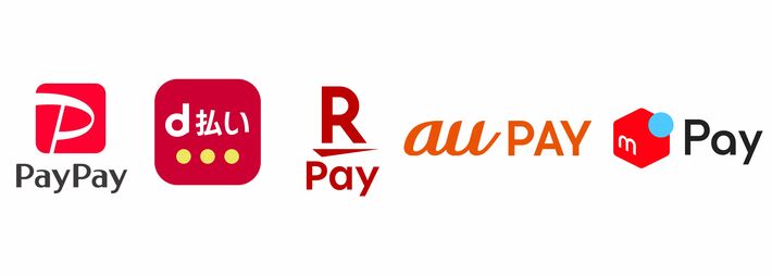 PayPay、d払い、楽天ペイ、au PAY、メルペイに対応