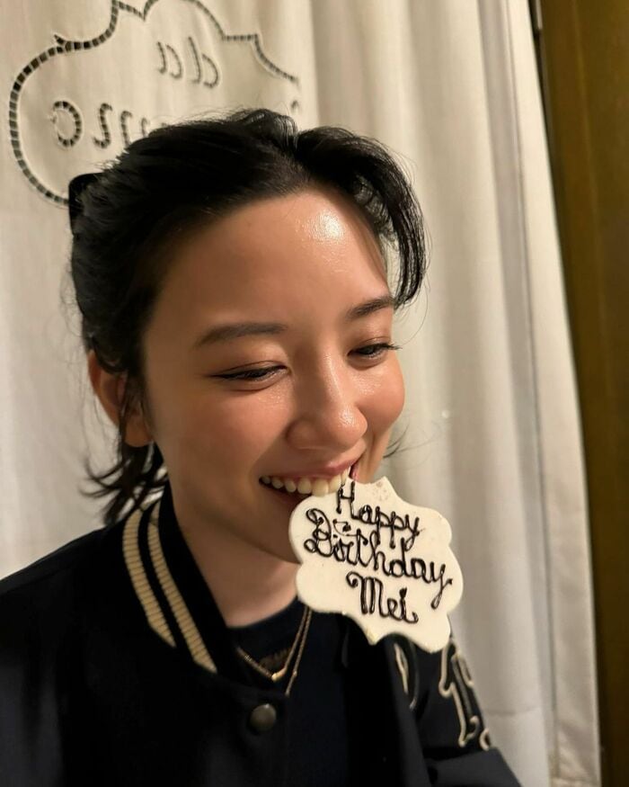 別の写真では、「Happy Birthday mei」と書かれたチョコレートのプレートをくわえて笑顔を見せる“あざとかわいい”ショットも!