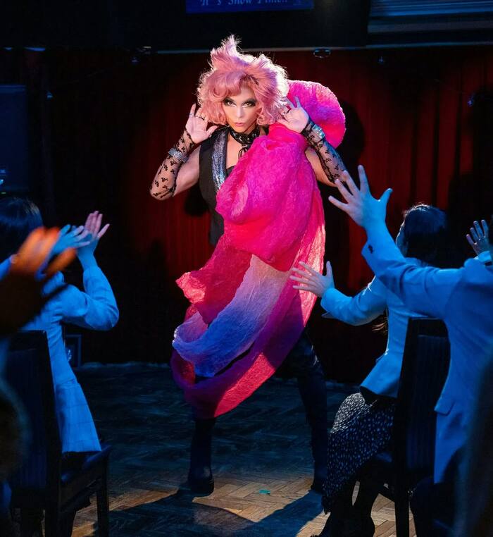 伝説のドラァグクイーン・クールミント(武田真治)のショーを見て、人生が動き始めたサチ(井桁弘恵)。