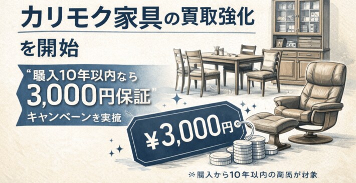 2026年2月より国産高級家具ブランドとして人気の高いカリモク家具の買取強化を開始いたしました。