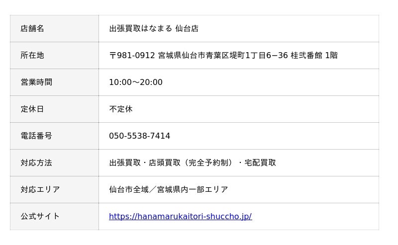 出張買取はなまる仙台店の店舗情報