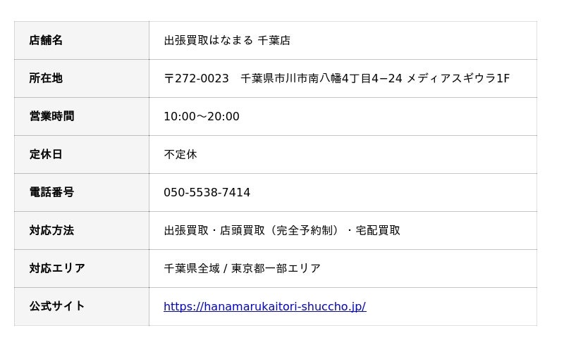 出張買取はなまる千葉店の詳細を見る
