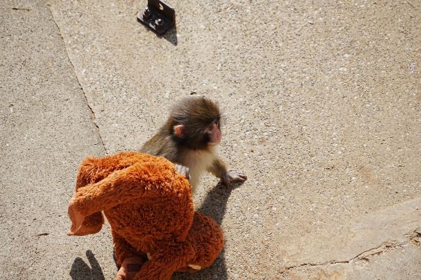 また、以前にも人工保育で育てた個体がおり、その個体にもぬいぐるみを抱かせたところ、群れ入れに成功したので、その経験もあり、ぬいぐるみを選択肢にいれました。