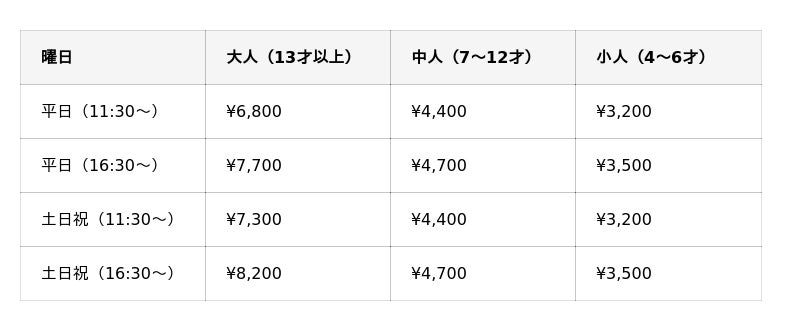 ※3才以下は無料です。