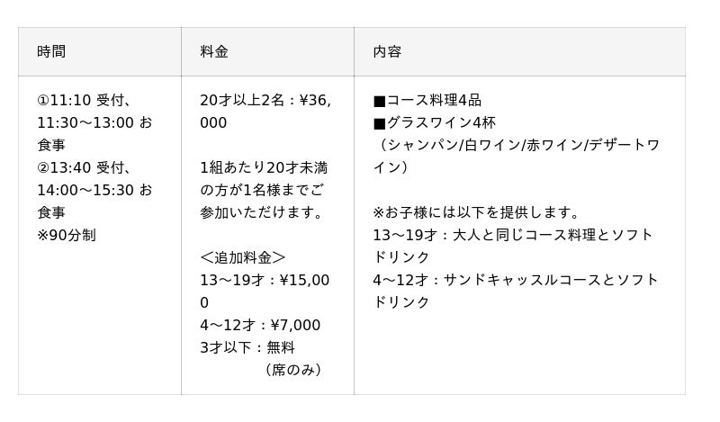 ※サンドキャッスルコースは、12才以下のお子様向けのコース料理です。