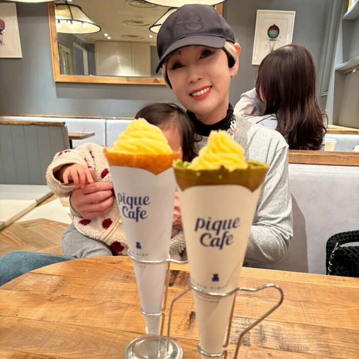 孫との時間を楽しんだ様子の秋野さんは投稿文で「孫とデートでグレープ食べました。食べたのは私と娘ですが。」と、テーブルに並んだクレープは秋野さんと娘で堪能したことも明かしています。