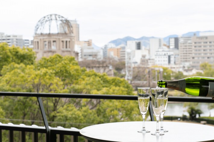 原爆ドームを臨む唯一無二のロケーションを最大限に活かし、少人数で穏やかに会話を楽しむ時間から、大人数の祝いの席まで、幅広いシーンに対応しています。貸切利用も可能で、広島随一の場所で贅沢な空間の使い方ができることも特徴です。
