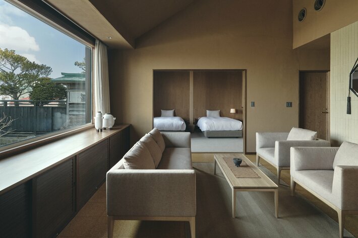 和洋折衷を特徴とする旧相馬家住宅の様式に呼応し、客室はオリエンタル・シックな佇まいを軸に構成。和と洋、歴史と現代を穏やかに融合させることで、この場所でしか体験できない滞在の質を創出しました。旧相馬家住宅ゆかりの歴史を感じる調度品、グローバルに活躍するデザイナーや気鋭作家によるオブジェなどのコンテンポラリーデザインや、日本の卓越した手仕事により生み出された工芸、老舗メーカーによるテーブルウェアやインテリアアクセサリーを採用。歴史的建造物の記憶を尊重しつつ、現代の快適性と美意識を両立させています。