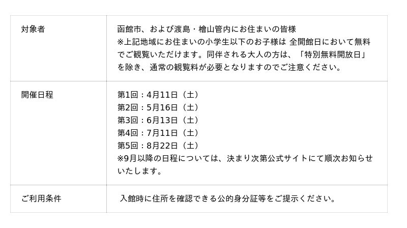 地元の皆様にこそご覧いただきたいという想いから、函館市、および道南地域(渡島・檜山管内)にお住まいの皆様を対象に、国指定重要文化財である「旧相馬家住宅」主屋を無料でご観覧いただける特別公開日を設けます。