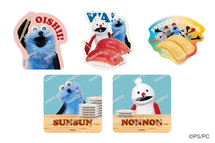 2024年11月に開催された初コラボに続く今回は、「スンスン」「ノンノン」「ゾンゾン」に加え、「ツクツク」と「ファンファン」もデザインに登場。さらに賑やかになったスンスンたちがおすしを楽しむ様子に注目です。