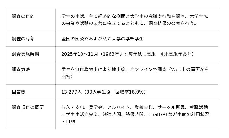 全国大学生活協同組合連合会「第61回学生生活実態調査」の概要