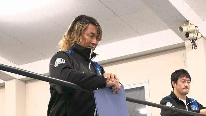 試験官を、棚橋弘至選手と田口隆祐選手、そしてOBの小林邦昭さんが務めるなか、8人の練習生たちの合否が発表されます。
