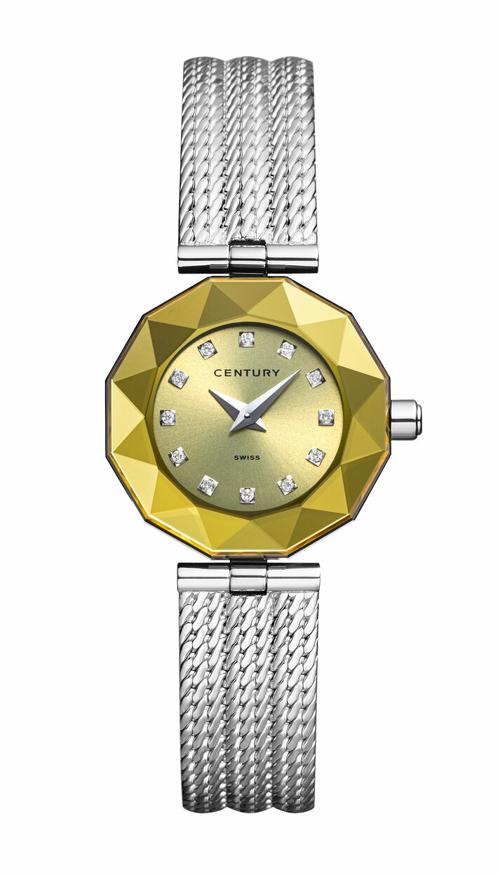 繊細なデザインでありながら、10気圧防水という実用性を兼ね備えているのも魅力。急な雨や水仕事の際も安心で、アクティブな現代女性のライフスタイルに寄り添います。「ステラ オーロ」は、センチュリー独自のサファイアカッティング技術とモダンな実用性が融合したジュエリーウォッチです。フォーマルなシーンを華やかに彩るだけではなく、デイリーな装いをランクアップさせるアイテムとして最適です。