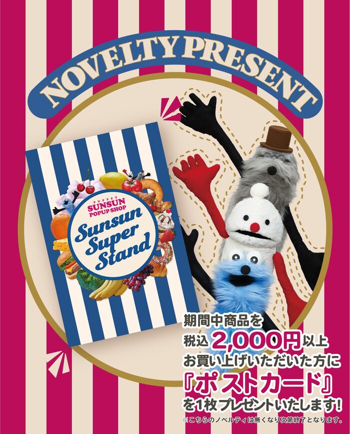 パペットの国「トゥーホック」に住むキャラクター・パペットスンスンの期間限定ポップアップショップ「PUPPET SUNSUN POP UP SHOP “Sunsun Super Stand”」が開催!2024年9月24日から10月16日まで、JR池袋駅(東京都豊島区)南改札前イベントスペースにて新商品含む約30商品が登場しています。