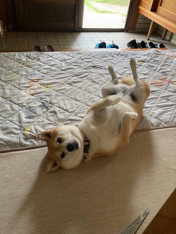 さまざまな場所で“へそ天”でくつろぐ6歳の柴犬が話題!
